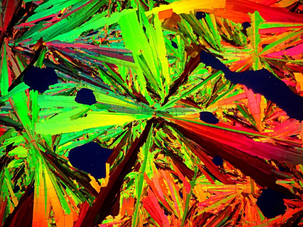 Davon habe ich einen Tropfen auf einem OT auskristallisieren lassen durch Abdunsten des Ethanols - dabei kristallisieren natürlich auch die Verunreinigungen aus. Ich vermute, dass die nadeligen Kristalle mein Hydrazon sind und die flachen eventuell die Verunreinigungen. Dann wäre die Bezeichnung auf den letzten beiden Bilder falsch - kann ich aber nicht mehr nachprüfen, weil ich schon alles wieder sauber gemacht habe.