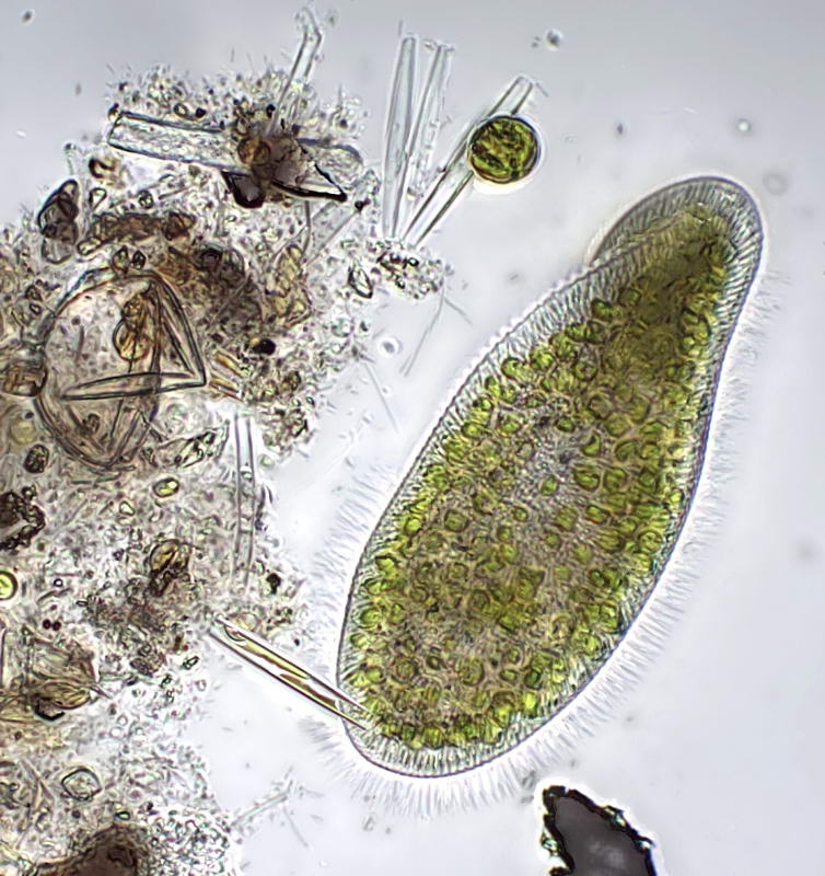 Ich hab mich schon oft gefragt, warum das Tierchen zwar auf der Schule im Bio-Untericht immer mikroskopiert wird, aber nie mit dem Stemi unter einer hohen Vergrößerung den Schülern gezeigt wird (Stemis gibts heute in den Schulen eigentlich auch). Da hat man zwar nicht die hohe Auflösung wie in deinem Bild, bekommt aber einen sehr guten 3D-Eindruck von der äußeren Gestalt, und der Bewegungsweise (nämlich wie eine Granate mit Drall), was zusammen ganz anders wirkt als die 2D-Abbildungen in den Schulbüchern. - Dsb.