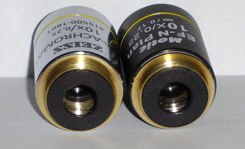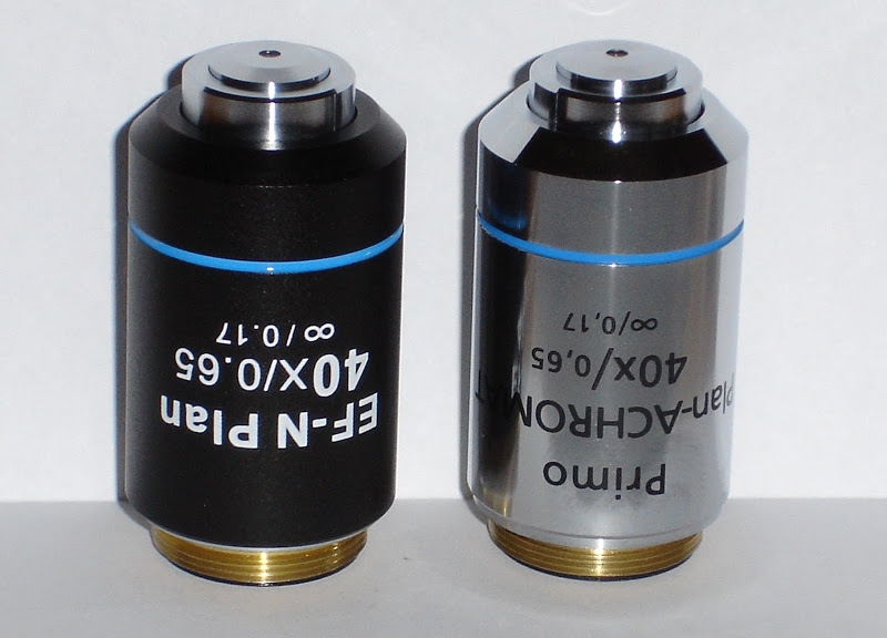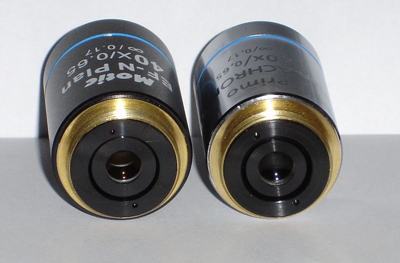 keine Unterschiede erkennen, die Objektive beider Hersteller nebeneinander sowohl am Motic-Stativ als auch am Primostar sind ident.