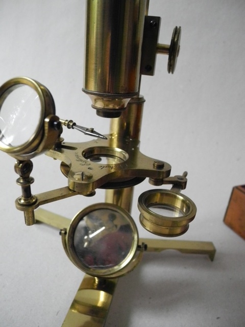 Mikroskope von Oechsle kannte ich bisher auch nicht. Such doch mal bei Google Books nach "Mikroskop" und "Oechsle". Da gibts schon einiges. Z.B. erfährt man, daß der Hofopticus Carl Oechsle in Esslingen offenbar ganz interessante Mikroskope gebaut hat. Er war der Sohn des berühmten Christian Ferdinand Oechsle, der mit dem Mostgewicht...
