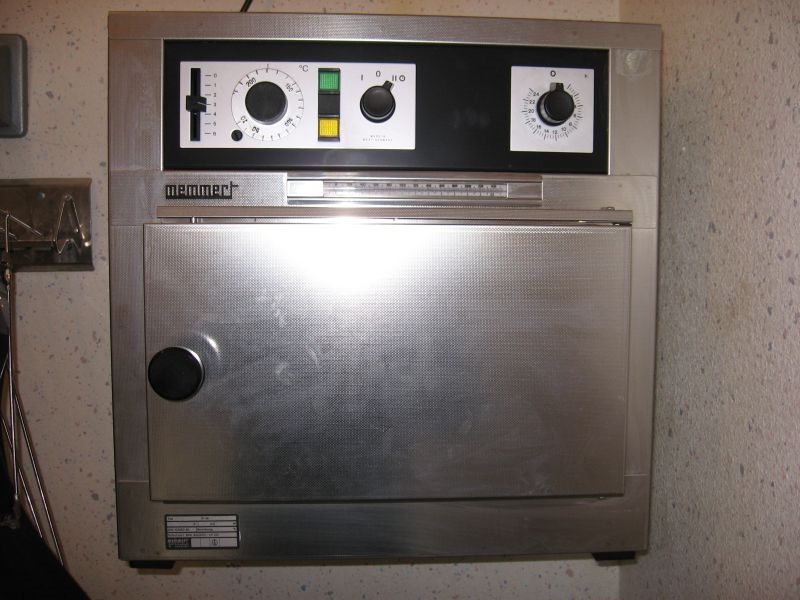 Das ist ein sehr geeigneter Memmert-Wärmeschrank. Zum Präparatetrocknen bei 40 bis 50°C nach dem Eindecken in Euparal, Malinol usw.