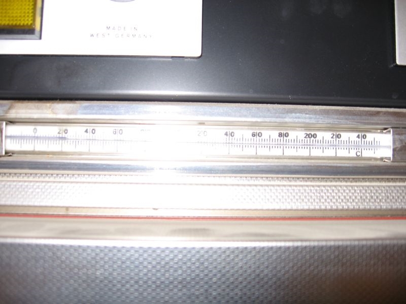 Mit der Thermometer kann man sehen bis wie weit die Temperatur, bei meine ist das 80°C, bei voll geöffnete Regler.