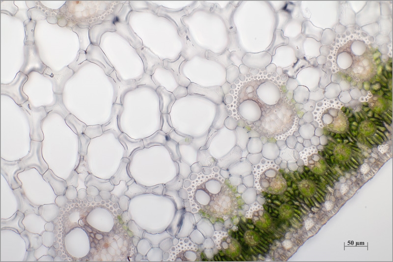 Dein Wasserpräparat ist von einer Qualität, die mich, als bekennenden Botanik-Laien, wieder fragen lässt, warum Pflanzenschnitte eigentlich überhaupt gefärbt werden müssen (jaja, ich weiß doch... ;)). Ungefärbt finde ich die Schnitte jedenfalls schöner als jede noch so farbenfrohe Färbung. Aber das ist völlig subjektiv und hilft natürlich auch nicht bei der Identifizierung verschiedener Zelltypen.