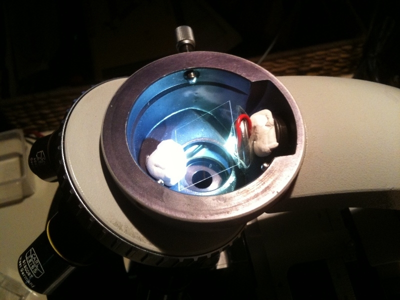 Dieser Ansatz erscheint mir sehr ausbaufähig zu sein. Z.B. ein kleines Modul, daß man dann in das Mikroskop steckt / legt.