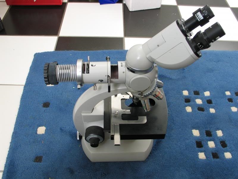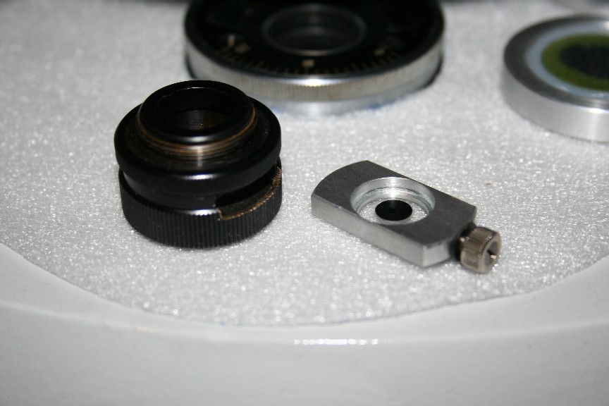 der Auflicht-Kondensor IV-FL ist die Einheit zwischen Stativ und Binotubus. Man sieht es auf dem letzten Foto vom Klaus. Der Reflektoreinsatz, der in der grünen Schale drin ist, hatte mir dazu gefehlt und es war keiner aufzutreiben. Also habe ich mir einen selber gemacht: