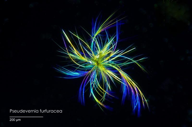 Jürgen Steinkohl hat im letzten Mikrokosmos einen Artikel veröffentlicht über diese recht häufige Strauchflechte, dabei liegt der Schwerpunkt in diesem ersten Teil bei der Makrofotografie, im 2. Teil der im Septemberheft kommen soll, geht es um die Mikroskopie und auch um die kristallinen Inhaltsstoffe. Er hat mir vorab ein paar beeindruckende Bilder geschickt. Das aus meiner Sicht schönste zeige ich hier mit seiner Zustimmung.