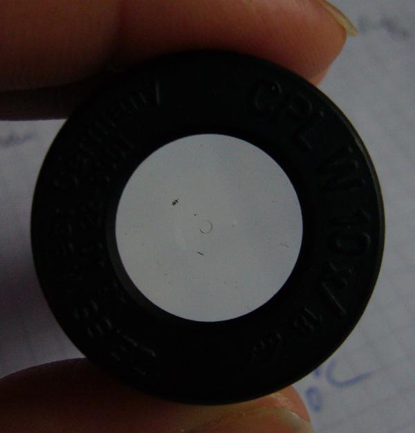 weil ich durch beide Okulare den Fehler gesehen habe, dachte ich, dass es nicht darn liegen kann. Dann habe ich die beiden aber heraus genommen und durchgesehen, bzw. sie gegen das Licht gehalten. Beide haben in der Mitte einen Kreis, der irgendiwe hineingekratzt ist. Der scheint das Licht zu brechen und den Fleck zu verursachen. Obwohl es sehr reglmäßig aussieht, glaube ich nicht, dass das werkseitig so sein soll.