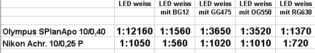 Die Polfilter stammen von Olympus BH2 Reihe. Als Kondensor ein Zeiss 465267 mit Kappe 465265 für NA 0,63 , für die Polarisation geeignet - rote Beschriftung.