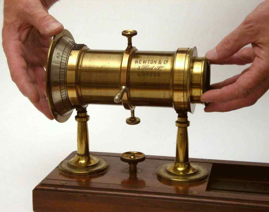 Richtig große Polarisationsprismen sind so selten, daß sie bereits um 1900 in der einschlägigen Fachliteratur einzeln erwähnt wurden. In diesem Bauteil einer optischen Bank der Fa. Newton, London "Optician to the Queen" für die Demonstration von Polarisationseffekten (auch Polariskop genannt), steckt ein Nicolsches Prisma von 16 x 5 cm. Weltweit gabe es sicher weniger als ein Dutzend solcher Giganten.