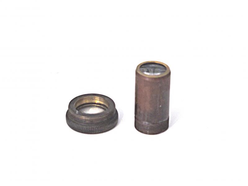 Das zweilinsige Okular hier nochmal auseinander geschraubt. Ich denke auch, dass es so ein Kindermikroskop ist für "junge Forscher" und ich würde es auch in die 20er 30er Jahre einordnen - also vor dem WW II.