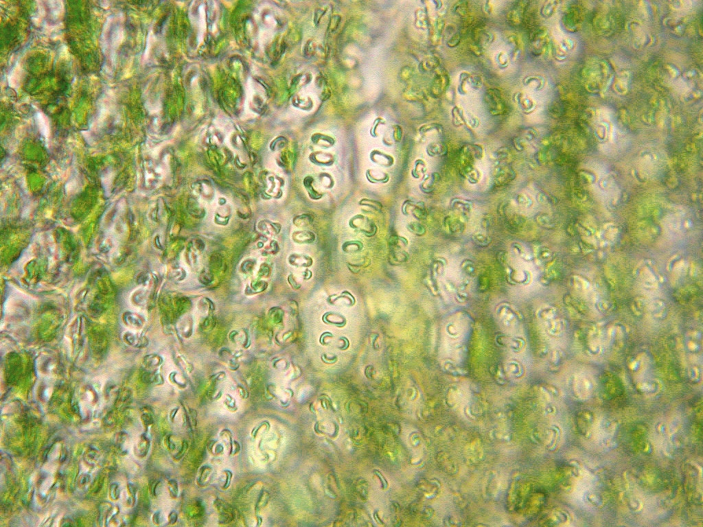 Ein solches Ästchen habe ich in Wasser gelegt - T. papillosissima zieht ja unglaublich schnell Wasser, wegen der Rhizome an den Blattachseln selbst dann wenn nur ein Teil eingetaucht ist. Ein Blättchen abgezupft, in einen Tropfen auf den Objektträger, Deckglas drauf und fertig.