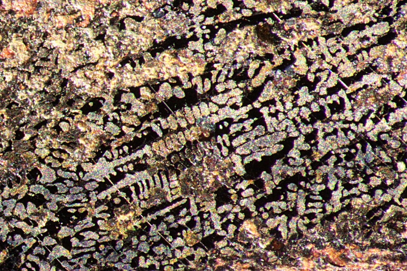 Graphit könnte dem untersten Bild entsprechen, indem es so feine Nadeln bildet, welche aber eher wirr und nicht so  dendritisch sind wie auf dem Bild