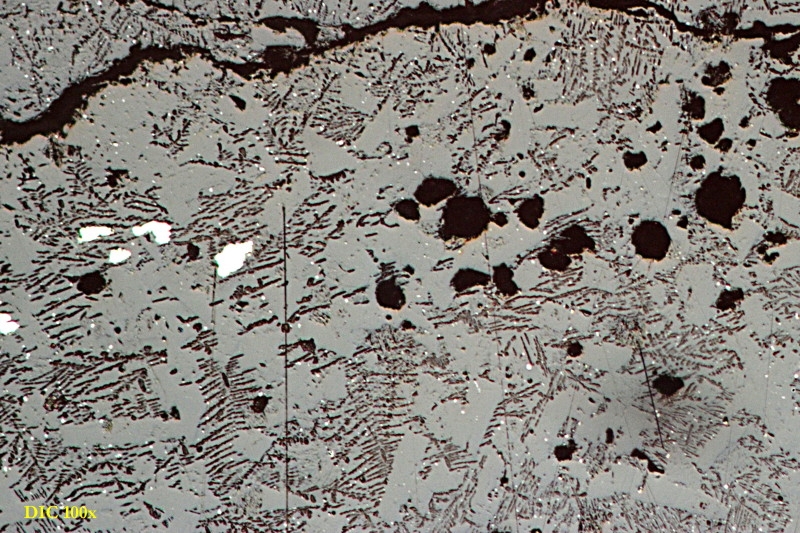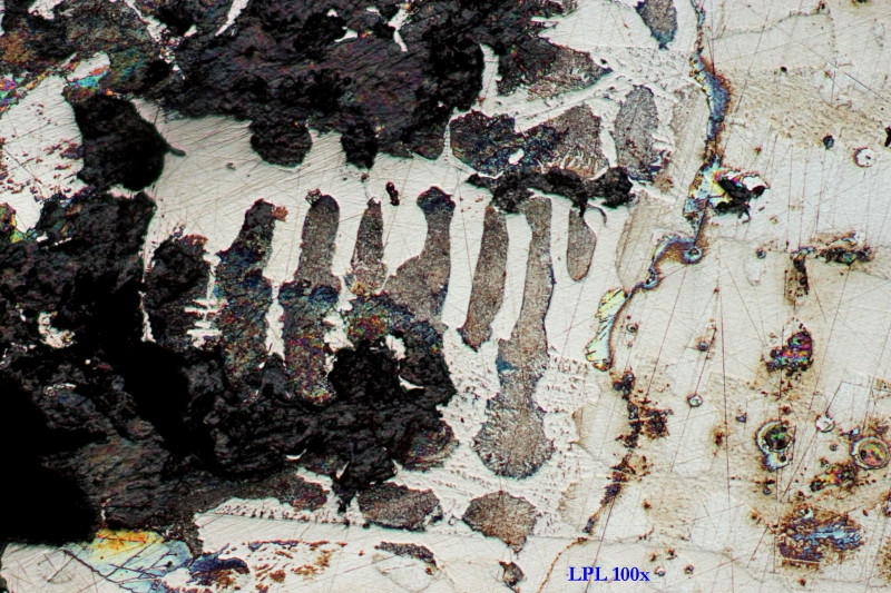 Man sieht, die Schliffe sind noch nicht da, wo sie sein müssen, aber man sieht wenigstens mal grobe Strukturen. Geätzt habe ich nocht nicht, weil ich nicht sicher bin, ob das bei der Qualität sinnvoll ist.