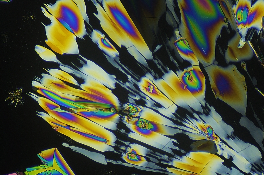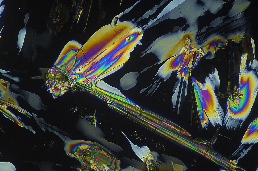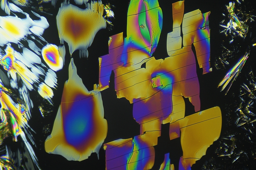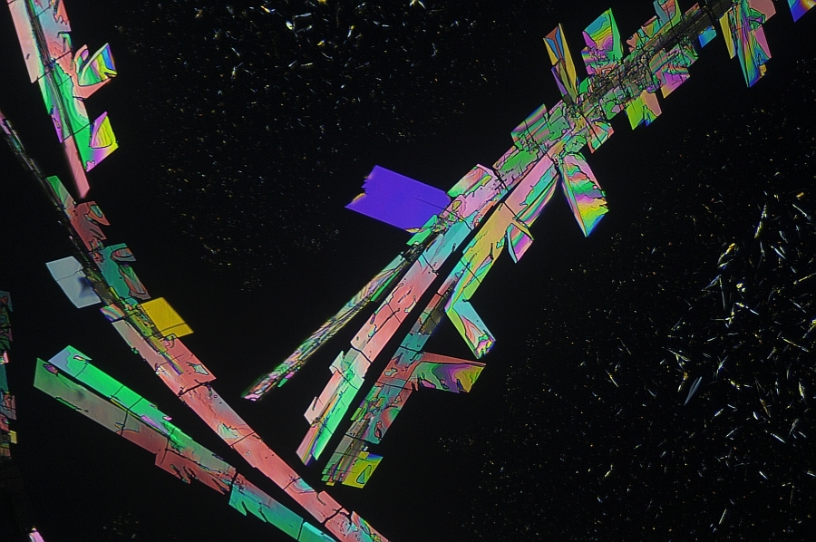 wie immer ein Genuss diese Kristalle. Mal was anderes sind die klaren geometrischen Kristalle - vom dunklen Hintergrund her hast du offensichtlich nur mit Pol ohne Kompensator gearbeitet. Bedeutet: die müssen entweder eine hohe Doppelbrechung oder höhere Schichtdicke haben.