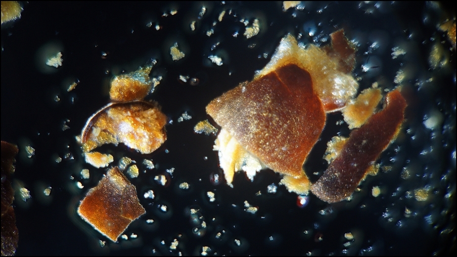 Die relative Anreicherung dieser Körnchen in der Probe ist übrigens der Tatsache geschuldet, dass ich ausgesiebt hatte – auch schon bei den ersten Fotos.