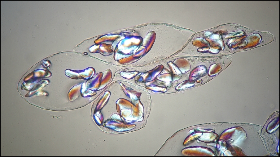 Bei dem Bild vom Quetschpräparat vermisse ich die "Pol-Kreuze" auf den Amylolasten - die dann auch keine sind. Oder ist das keine Pol-Aufnahme. Dann muss Jod-Jodkalium ran.