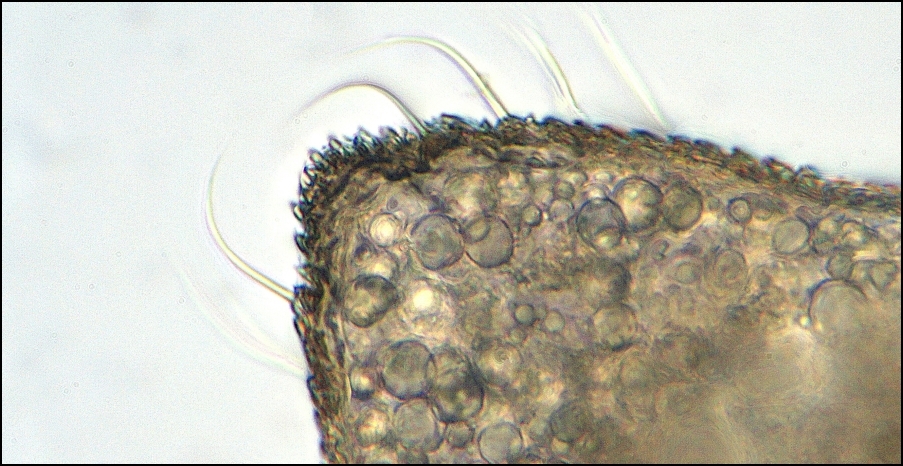 Während einer Wanderpause entstanden die folgenden beiden Aufnahmen im Auflicht und im Durchlicht (durch das Blatt) mit dem 3,2er.