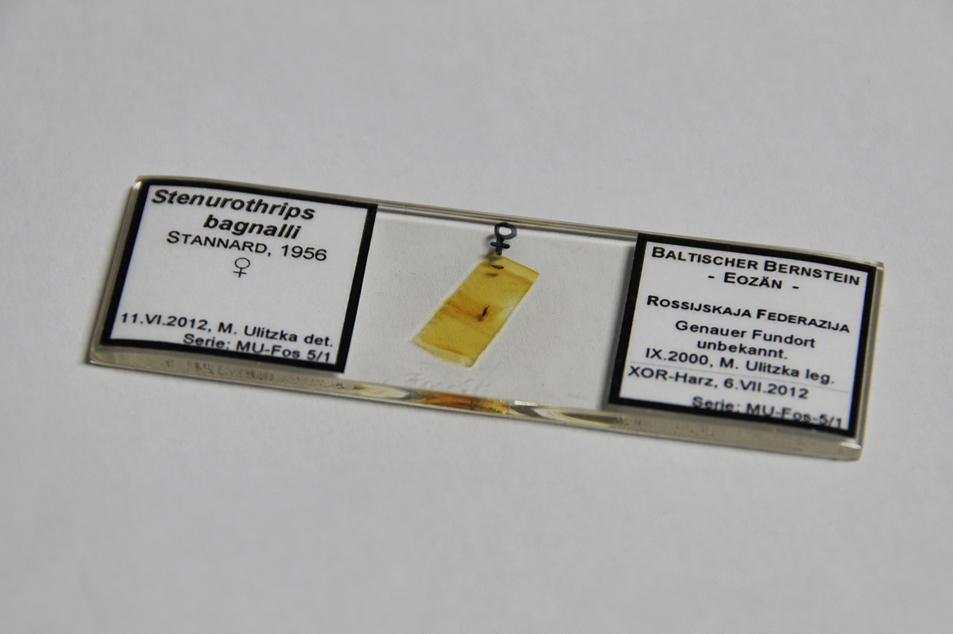 Im Gegensatz zu Dipteren scheinen Thysanopteren im Harz sich noch viel bewegt zu haben. Leider haben fast alle Fossilien kleine Verwerfungen und man sieht selten das ganze Tier. Dennoch sind sie oft sogar bis zur Art bestimmbar.