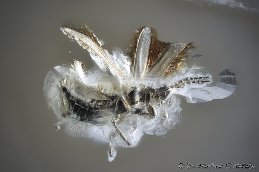 Das Foto habe ich von rechts oben durch eine Papierhülse geblitzt. Unter dem Objektträger lag weißes Papier. Stack mit Helicon-Focus aus 37 Bildern.