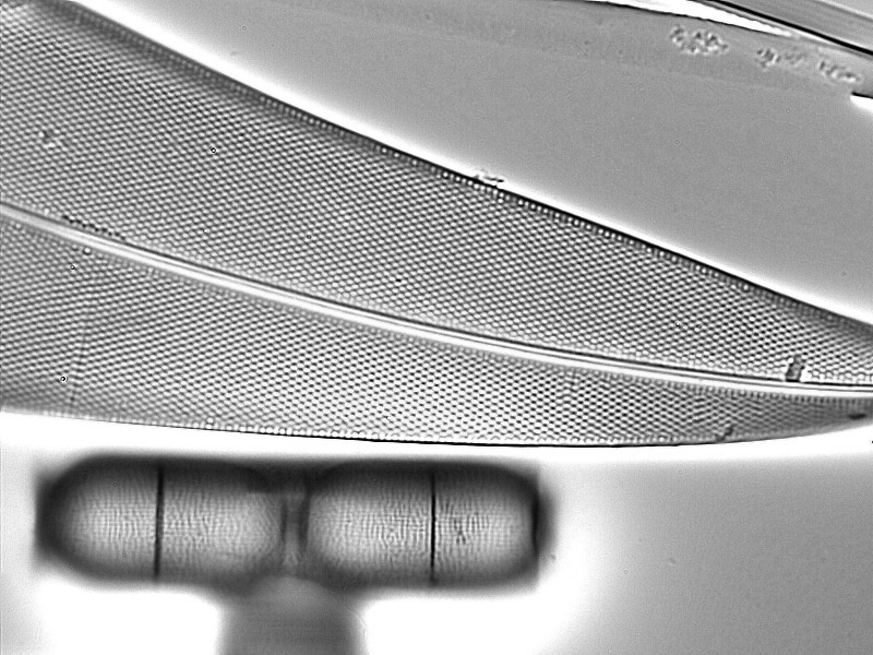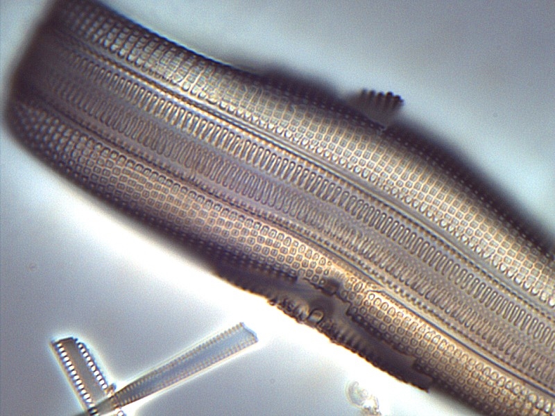 Es ist mehr oder weniger ein Glücksfall, wenn ein Deckglas mit Diatomeen die "richtige" Goldauflage hat. Nun aber 3 Beispiele von älteren Präparaten.