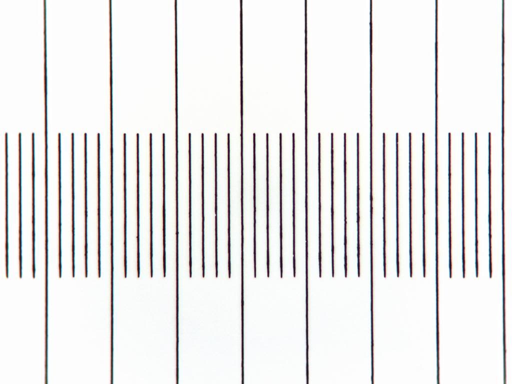 die Auflösung sinkt ebenfalls, bei Strichen die zum Zentrum zeigen sinkt sie etwa auf 65%