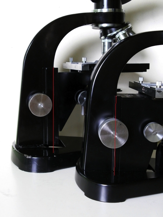 Dreiecksfuß um sie vom T-füßigen Ortholux und seinem kleinen Bruder, dem schwarzen Dialux sowie dem Laborlux I und II abzugrenzen.