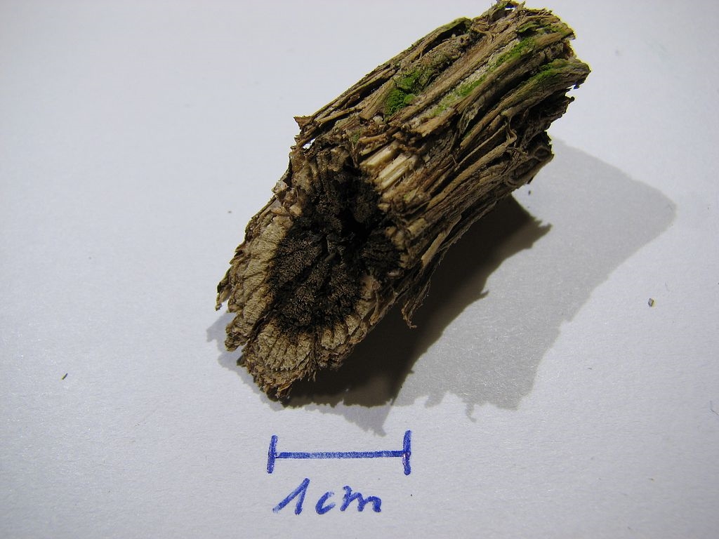 Aber da sind ja noch die Stücke von der großen Sprossachse der Klematis! Es währe doch gelacht, wenn sich in der dunkelbraunen Masse, die einmal Parenchym oder Xylem gewesen war, nicht Spuren des Pilzes finden ließen! Also frisch ans Werk!