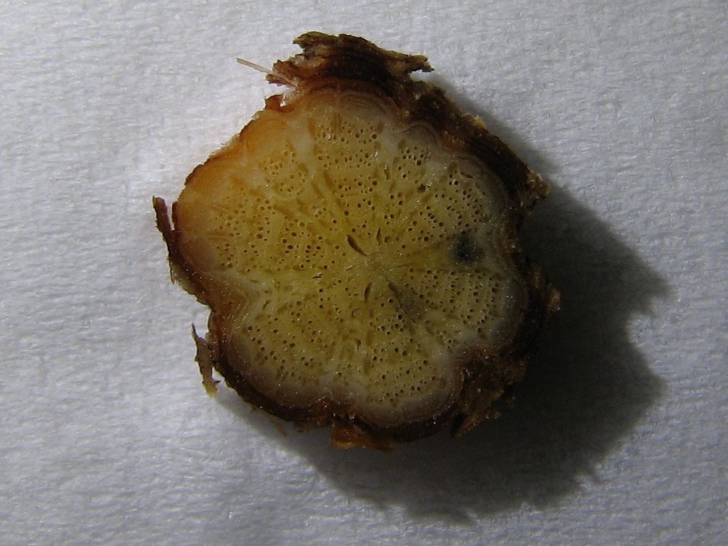 Da primär das innere Parenchym befallen wird, gehe ich davon aus, dass sich der Pilz die großen Zellzwischenräume im Mark und den Markstrahlen zu Nutze macht und an ihnen entlang wandert.