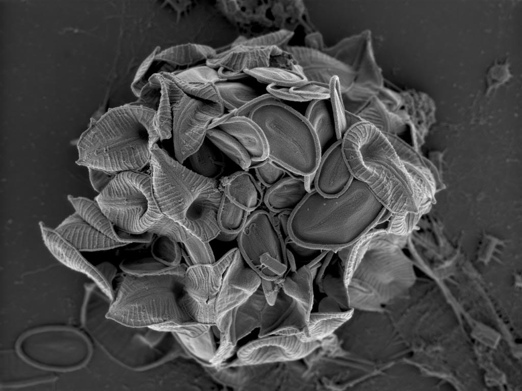 zwar gefällt auch mir das "undurchsichtige" Bild besser, aber die Sache mit dem Informationsgewinn ist problematisch: die ästhetisch ansprechende Reduzierung der Abbildung auf die Gestalt der Oberfläche ist bei lichtmikroskopisch durchsichtigen oder durchscheinenden Objekten wohl eher ein Informationsverlust. Ähnliches gilt für die Leiterbahnen auf Markus' Wafer: Beide Darstellungsformen haben ihre Berechtigung.