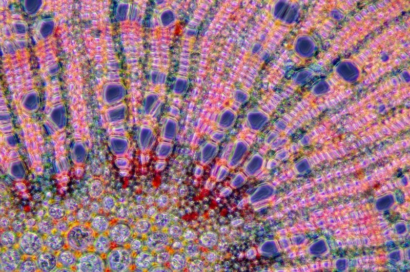 Bild 05 Dunkelfeld, ungefärbter Schnitt, Japanische Hainbuche (Carpinus japonica)