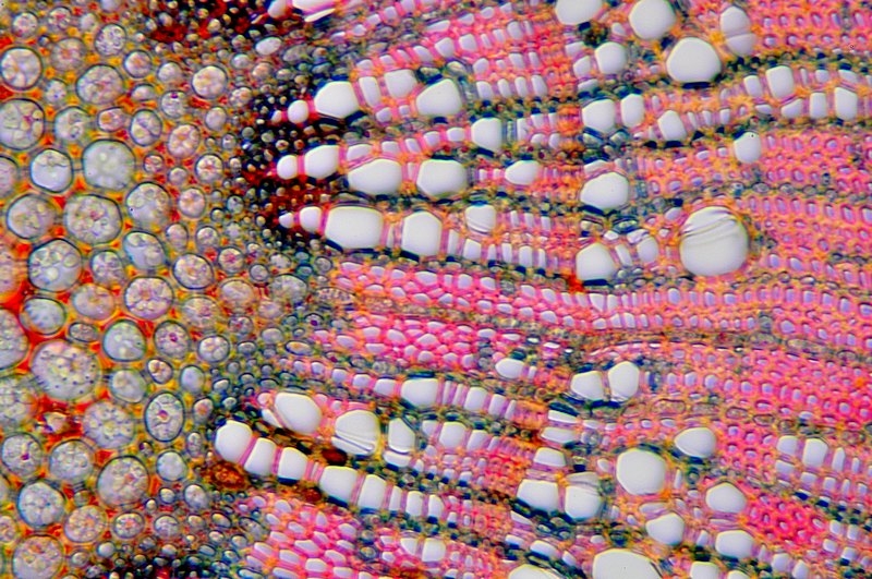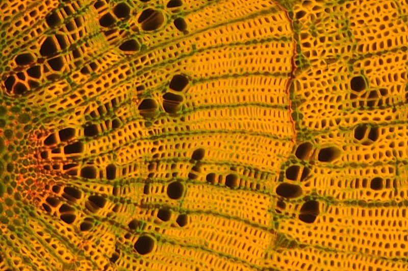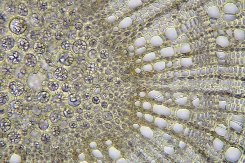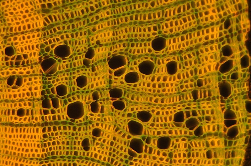Bild 07 Markparenchym und Xylem, ungefärbter Schnitt, Japanische Hainbuche (Carpinus japonica)