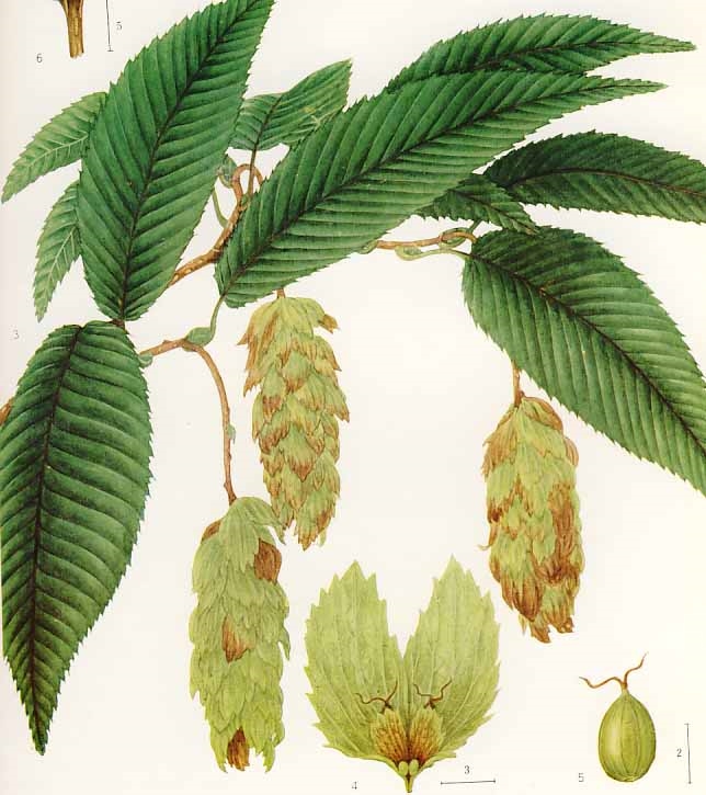 zur Gattung  Carpinus  gehören 26 sommergrüne Baum- und Straucharten mit wechselständigen, gesägten Blättern, Kätzchenblüten und einsamigen, abgeflachten Nussfrüchten, verbreitet in Laubwaldgebieten gemäßigter Zonen der Nordhalbkugel mit  Schwerpunkt in O- Asien.
