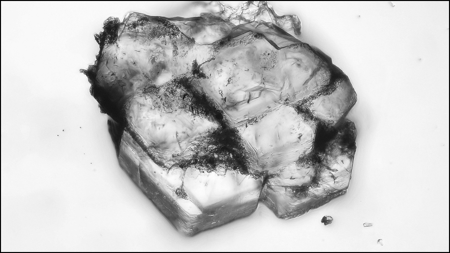 Komisch, dass man den Kristall doch noch so gut erkennt. Auch wenn Dein "Silicon-Bad" im Brechungsindex satte 0,05 daneben liegen sollte (was ich nicht glaube) dürfte das Relief nicht so deutlich sein. Kannst Du bitte einmal ein Bild mit gekreuzten Polarisatoren zeigen, damit man sich eine Vorstellung von der Anisotropie machen kann?