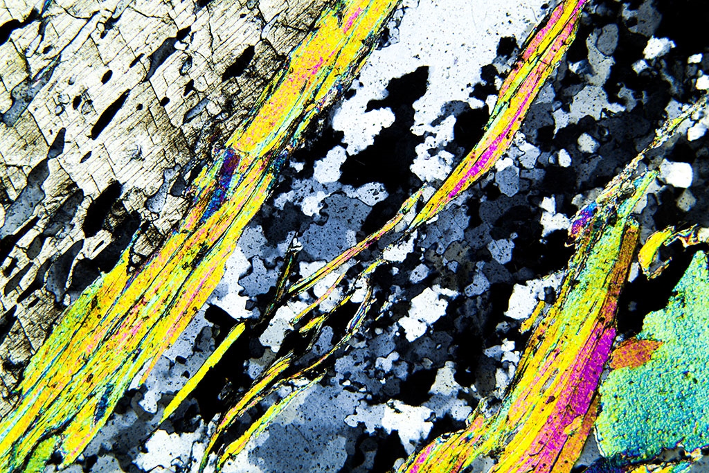 Alle Aufnahmen aus dem Dünnschliff Q, nur mit gekreuzten Polfiltern, ohne Hilfsobjekt.