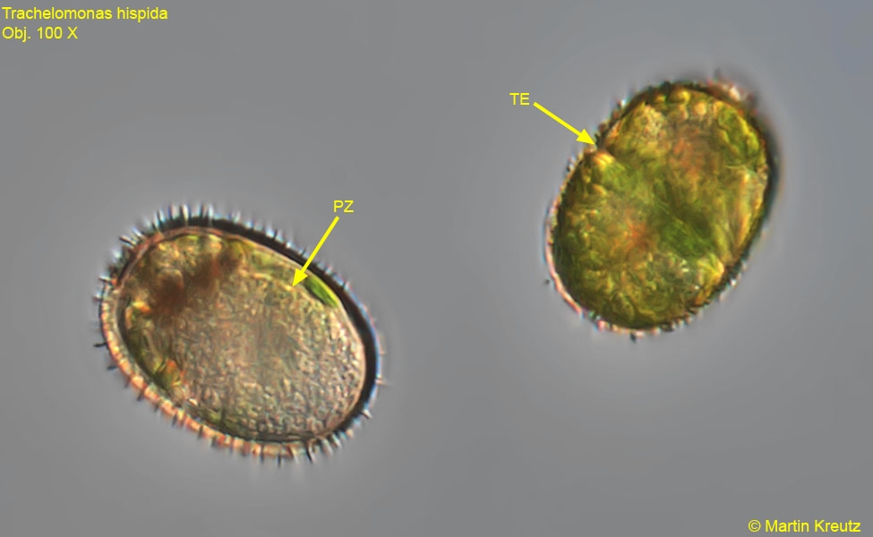 TE = Zellteilung Trachelomonas-Zelle (zufällig im Bild)
