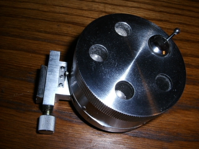 Nimmt dann den Grundkörper des Reliefkondensors(Glas statt Messingstreben für die Objektivhalterung!)...