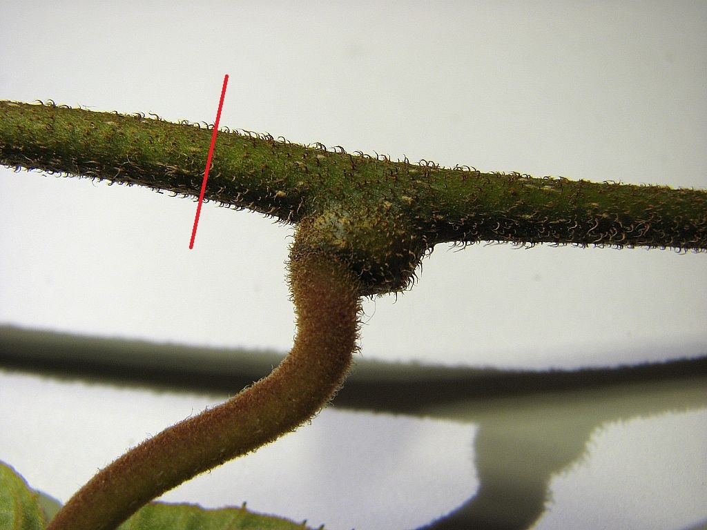 Bild 7: Spross und Blattstiel unserer Pflanze mit Schnittführung