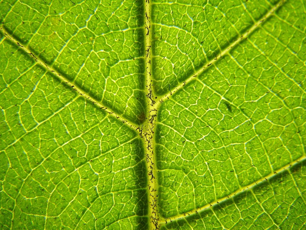 Bild 14a,b: Makroaufnahme von der Blattoberseite (14a) und der Blattunterseite (14b) im Durchlicht