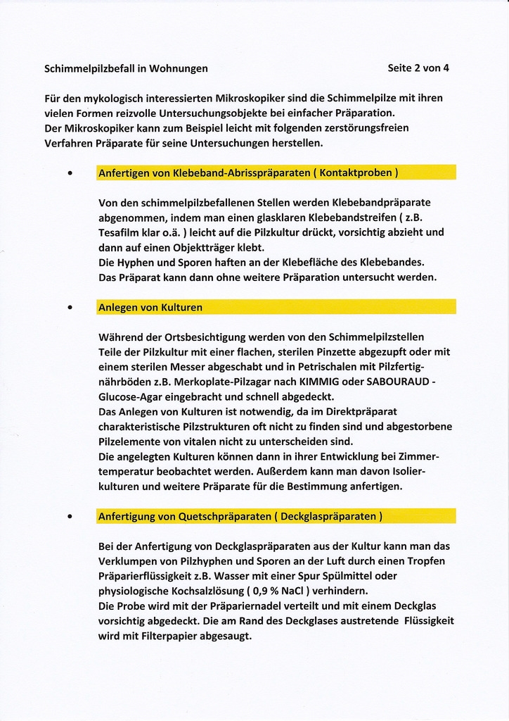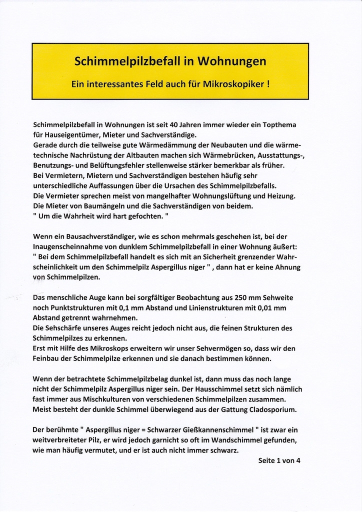 Schimmelpilze in Wohnungen • Ein interessantes Feld auch für Mikroskopiker !