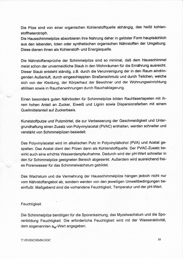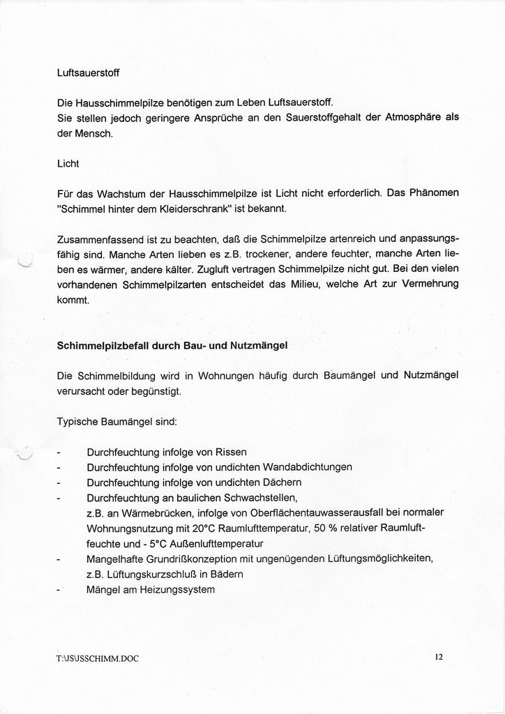 Schimmelpilze und den Schimmelpilzbefall durch Bau- und Nutzmängel.