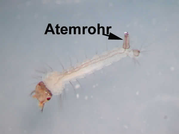 Die Culexlarve atmet durch durch ihr Atemrohr,