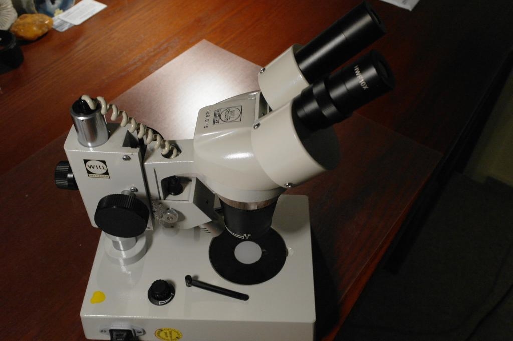 so etwas ist immer mal wieder bei Ebay für oft unter 200 € (meins hier für 174 €) zu bekommen. Es ist ein Stereomikroskop von Will-Strübin und kann mit Durchlicht (also wie ein einfaches Durchlichtmikroskop) und Auflicht mit Vergrößerungen etwa von 16-60 eingesetzt werden.