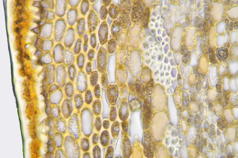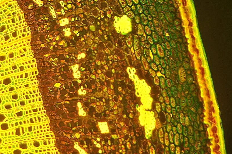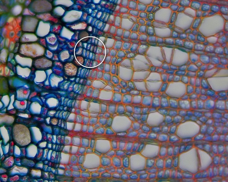 Im Bild 11 sprichst Du von einem mehrschichtigen Cambium. Das ist meines Wissens so nicht korrekt. Das Cambium als Meristem an sich ist immer nur eine Zelllage "dick", die dort gebildeten neuen Zellen sind jedoch zunächst undifferenziert und ihrer "Elternzelle" sehr ähnlich, erst auf ihrem Weg Richtung Xylem und Phloem differenzieren sie zu den typischen Zellen der jeweiligen "Zielgewebe" aus und bilden Tracheen, Siebröhren und Parenchyme mit den typischen Spezialisierungen wie z.B. sklerenchymatischen Zellwänden. Somit entsteht besonders in den Wachstumsphasen mit hoher Zellteilungsrate der Eindruck eines mehrreihigen Cambiums.