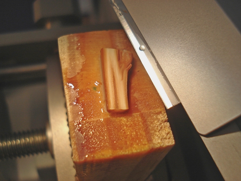 Bild 14 Schnittprobe auf einen Holzklotz geklebt, Salix fragilis