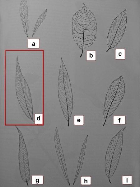 a Salix purpurea, b S. caprea, c S. daphnoides, d S. fragilis, e S. alba, f S. cinerea, g S. nigra, h S. viminalis, i S. pentandra