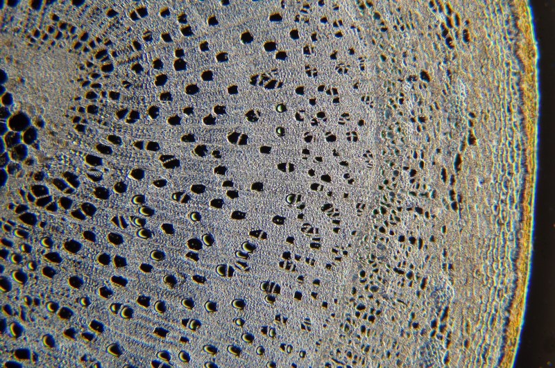 Bild  06 Xylem, ungefärbter Schnitt, Salix fragilis