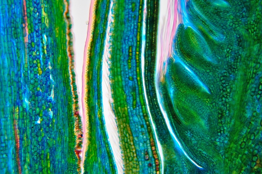 Die Färbung war prinzipiell als Vitalfärbung für Carex-Blätter gedacht - darum habe ich bei meiner Färbung auch Testfärbung geschrieben. Das Interessante dabei ist ja, dass Rhodamin z.B. mit Gerbsäure und anderen Inhaltsstoffen Reaktionen eingeht und dadurch Effekte ergibt, die unter Anderem spannende Bilder liefern.