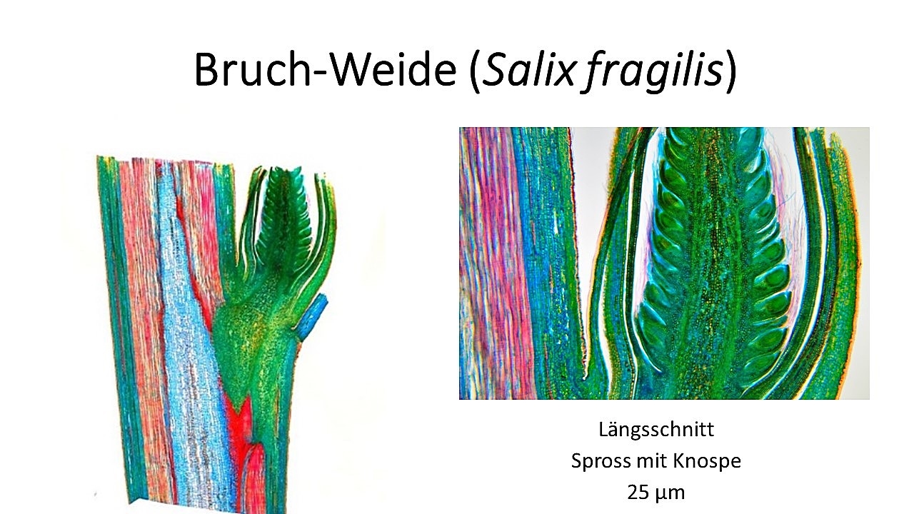 Botanik: Bruch-Weide (Salix fragilis) -Längsschnitte 25 µm, Spross mit Knospe- *
