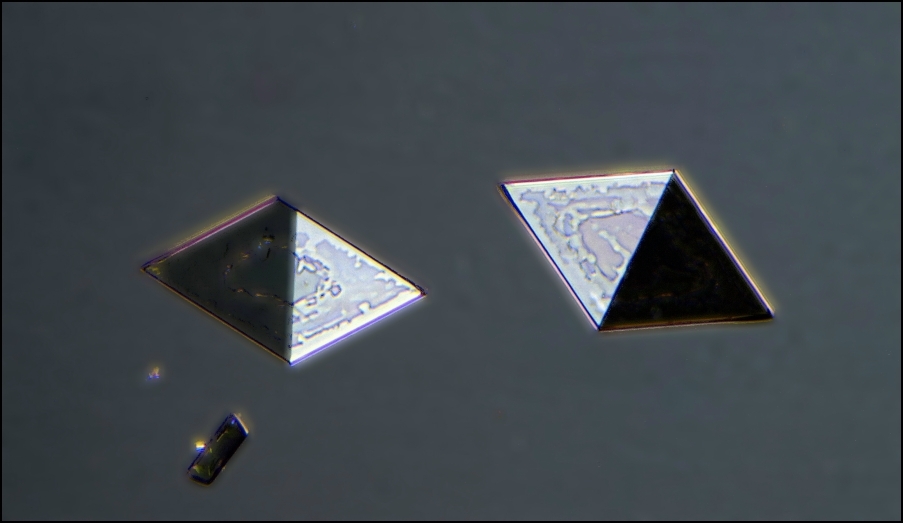 leider kann ich aus diesen Bildern keine weiteren Informationen zum Natriumammoniumhydrogenphosphat-Tetrahydrat beitragen, aber eines ist sonnenklar: Du hast nun ein Stadium erreicht, wo es erforderlich wird nach weiteren Möglichkeiten der Kristalluntersuchung zu greifen. Dies wäre zunächst eine einfache Drehvorrichtung, mit deren Hilfe Du die wunderschönen Kristalle in verschiedenen Raumrichtungen betrachten kannst. Dies ist der Spindeltisch, den man dann im überübernächsten Stadium auch zu quantitativen Messungen nutzen kann. Er ist ein wunderschönes Arbeits- und Spielgerät! Eine Bauanleitung für eine Einsteigerversion findest Du hier http://www.webpages.uidaho.edu/~mgunter/ss/GunterSpindleStage.pdf auf Seite 35 f; Bilder und Impressionen hier http://www.mikroskopie-forum.de/index.php?topic=12158.0. Ich bin gespannt wie virulent dieser Erreger bei Dir reagiert.