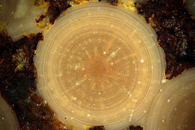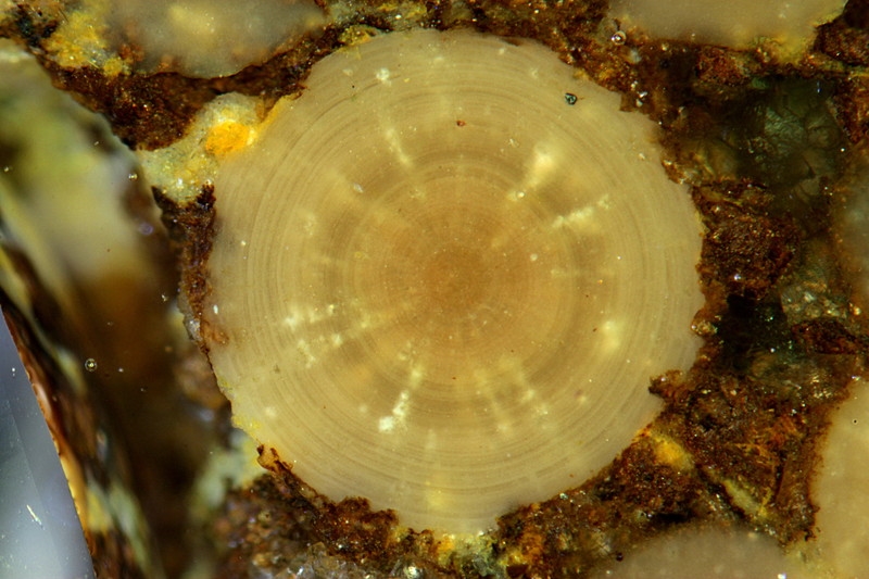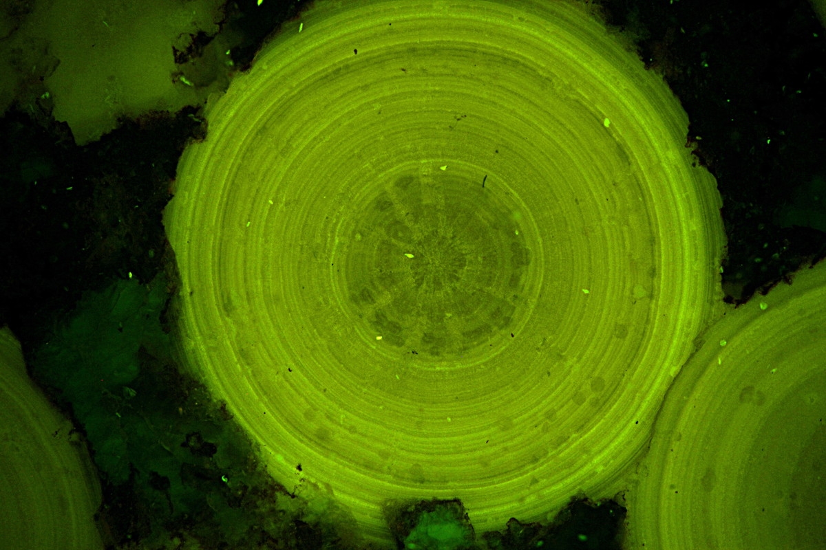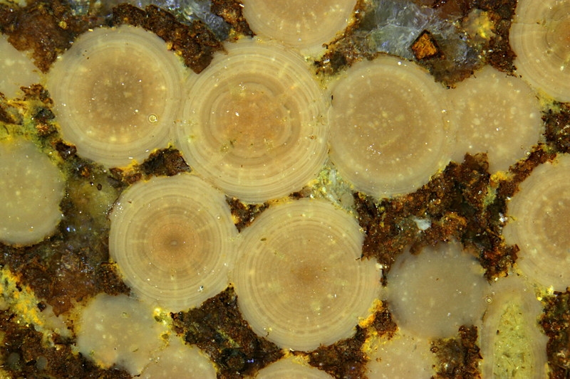 im Beitrag Ooide/Pisoide hat Dünnschliffbohrer Bilder eines Anschliffs einer Probe gezeigt. Ich habe von ihm noch eine walnussgroße Probe erhalten. Vielen Dank dafür! Ich wollte Auflichtfluoreszenz daran versuchen.